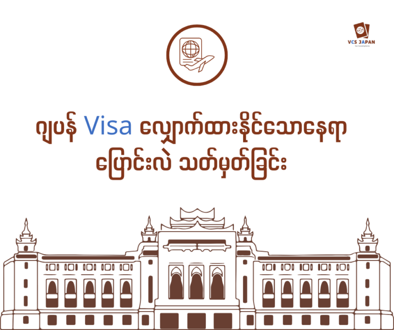 ဂျပန်သွားဖို့ပဲဖြစ်ဖြစ်၊ ဂျပန်မှာ Visa ပြောင်းဖို့ပဲဖြစ်ဖြစ်… စိတ်ပူနေရပြီလား? Visa Consulting ယူဖို့ မေ့နေကြမှာစိုးလို့ တစ်ချက်လောက် သတိပေးပါရစေ။ ဂျပန်ရောက်ဖို့ စိတ်ကူးရှိရင်ဖြစ်ဖြစ်၊ ရောက်နေပြီးသားသူတွေ ဗီဇာကိစ္စ အခက်အခဲရှိရင်ဖြစ်ဖြစ် VCS Japan ရှိတယ်နော်။ အဓိက အားသာချက်ကတော့ ဂျပန်နိုင်ငံက ရှေ့နေကိုယ်တိုင် သေချာတိုင်ပင်ဆွေးနွေးပေးမှာဖြစ်လို့ အချက်အလက်မှန်ကန်မှုအတွက် ၁၀၀% စိတ်ချရပါတယ်။ လျင်မြန် လွယ်ကူစွာ လုပ်ချင်သူများ အချက်အလက် တိတိကျကျနဲ့ ပြင်ဆင်ချင်သူများ Reject မဖြစ်အောင် စနစ်တကျ လျှောက်ထားချင်သူများ အခုပဲ VCS Japan မှာ လုပ်ငန်းအပ်ပြီး […]